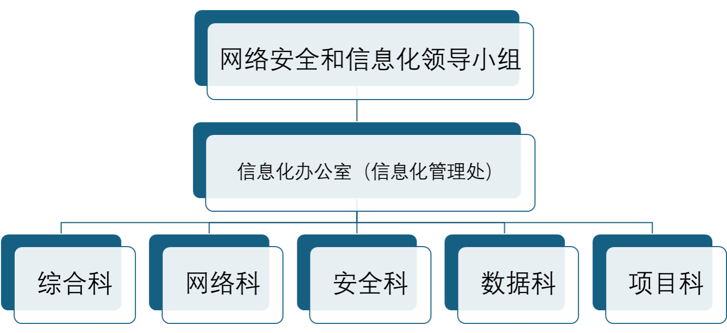 个科室:综合科、网络科、安全科、数据科、项目科。